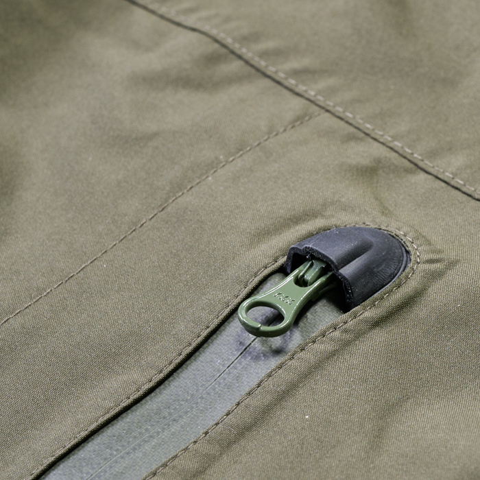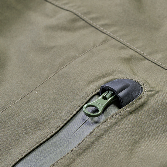 - 止水ファスナーにより水の浸入を防げます。更にファスナートップにはカバーを装着し、防水仕様になっています。