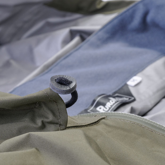 - 軽量重視のシンプルな構造のアジャスター。フードを絞り、風雨対策に対応可能です。