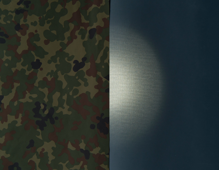 遮光性生地を使用したポンチョ。側面の4本のファスナーを使い分けることによってタープやシュラフカバーにもなります。一切、光を通さないので日差しの強い日などにこれでテントを覆ってしまえばテント内部の温度の上昇を低減させることができます。 また、数人で行動する場合、複数のポンチョのファスナーで連結することで大型タープとして使用することもできます。