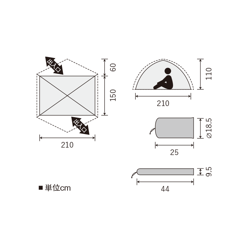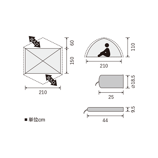 - 間口210×奥行150×高さ110cm