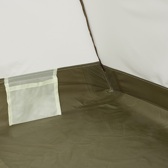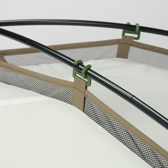 - テント本体四隅は、スリーブによりポールと接続。剛性を高めながら、使用中に破損しにくい構造。