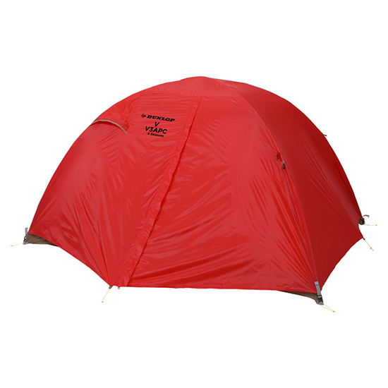 - Vシリーズは1989年にヒマラヤ遠征隊の為に企画したスペシャルモデルを基に、日本で活躍するコアな岳人向けに作成したDUNLOPテントのフラッグシップモデルです。大きなモデルチェンジはないものの、これまで改良を重ねてきた中、Vシリーズのコンセプトは脈々と受け継がれてきました。それは「耐久性」と「強度」の追求です。生地の強度や耐久性、それにテント自体の構造に至るまで、この2つのキーワードをベースに企画してきたのがVシリーズです。しかし、どうしてもクリアできない問題が「耐久防水性」でした。ポリウレタンコーティングを施した防水素材では、年月が経つにつれて「経年劣化」「加水分解」の現象が見られ、どんなに強い生地を使用しても防水低下は免れませんでした。一時期、ポリウレタンコーティングからポリエステルコーティングに移行した時期もありましたが、大きな有利性は見られず長続きはしませんでした。