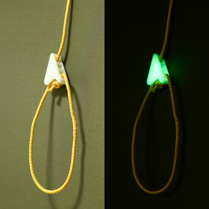 - 光をあてると右画像のようにひかり、暗い中で他テントと見分ける目安になります。