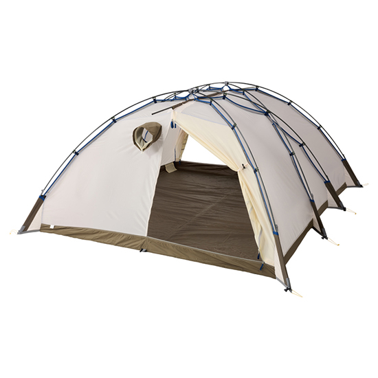 - 3人用ドームテント2つを天井ポールで連結したようなデザインにすることであえて天井を低くして耐風性の強いテントを実現。