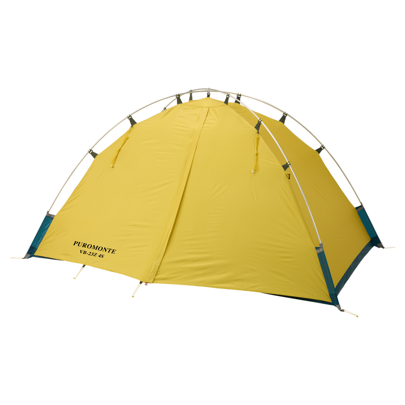 今回発売するVB-13Z・23Zは、これらのシングルウォールテントのデメリットをことごとく潰して、快適な居住性と素早い設営・撤収、さらに軽量・コンパクト性の全てを手に入れようと企画・開発してきました。そのためコストを恐れす、今考えられる最高の素材を組み合わせた、まさに弊社のフラッグシップモデルと呼べるテントです。