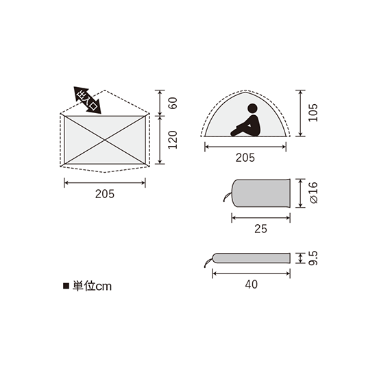 - 間口205×奥行120×高さ105cm