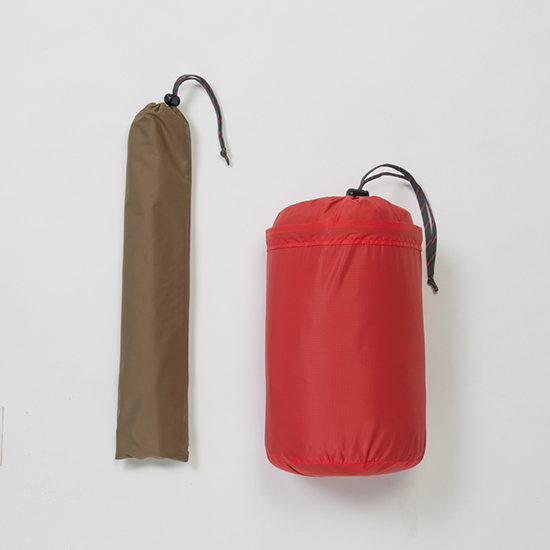 - 挿入口の広い収納袋は、撤収したテントを収納するのも楽です。フライシートも専用収納袋付。