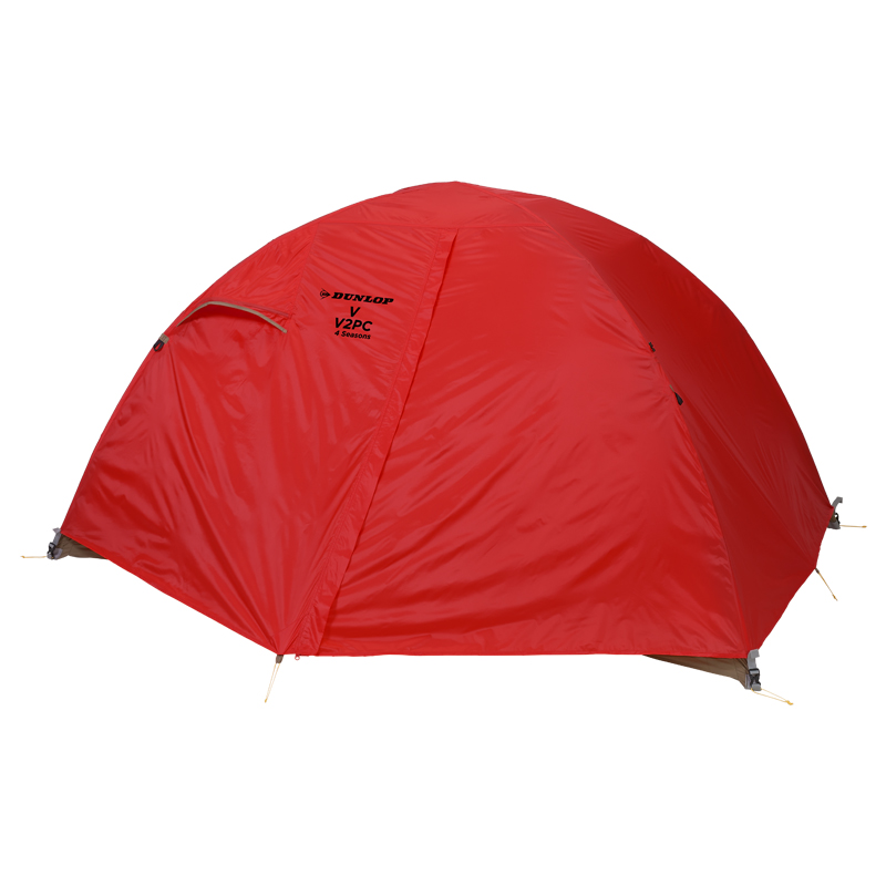 - Vシリーズは1989年にヒマラヤ遠征隊の為に企画したスペシャルモデルを基に、日本で活躍するコアな岳人向けに作成したDUNLOPテントのフラッグシップモデルです。大きなモデルチェンジはないものの、これまで改良を重ねてきた中、Vシリーズのコンセプトは脈々と受け継がれてきました。それは「耐久性」と「強度」の追求です。生地の強度や耐久性、それにテント自体の構造に至るまで、この2つのキーワードをベースに企画してきたのがVシリーズです。しかし、どうしてもクリアできない問題が「耐久防水性」でした。ポリウレタンコーティングを施した防水素材では、年月が経つにつれて「経年劣化」「加水分解」の現象が見られ、どんなに強い生地を使用しても防水低下は免れませんでした。一時期、ポリウレタンコーティングからポリエステルコーティングに移行した時期もありましたが、大きな有利性は見られず長続きはしませんでした。