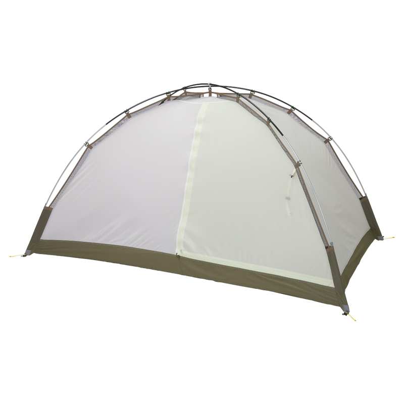 - テント本体四隅は、スリーブによりポールと接続。剛性を高めながら、使用中に破損しにくい構造。