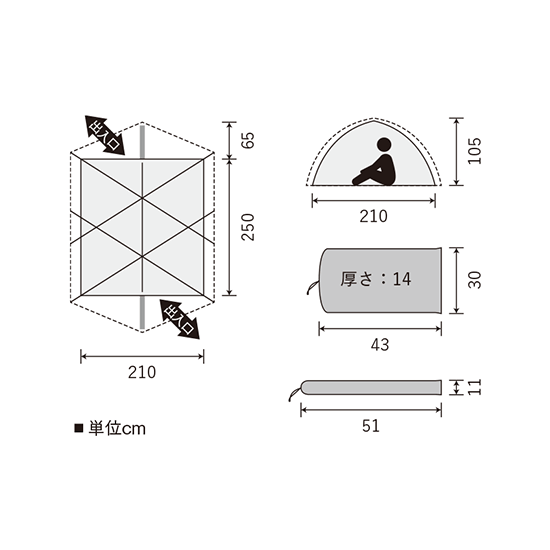 - グループユーステントなので入口を2つ設けて出入りのしやすさと通気性UPを実現。